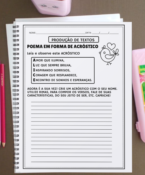A apostila de Produção de Textos contém 41 páginas de atividades e vai em PDF pronto para impressão.