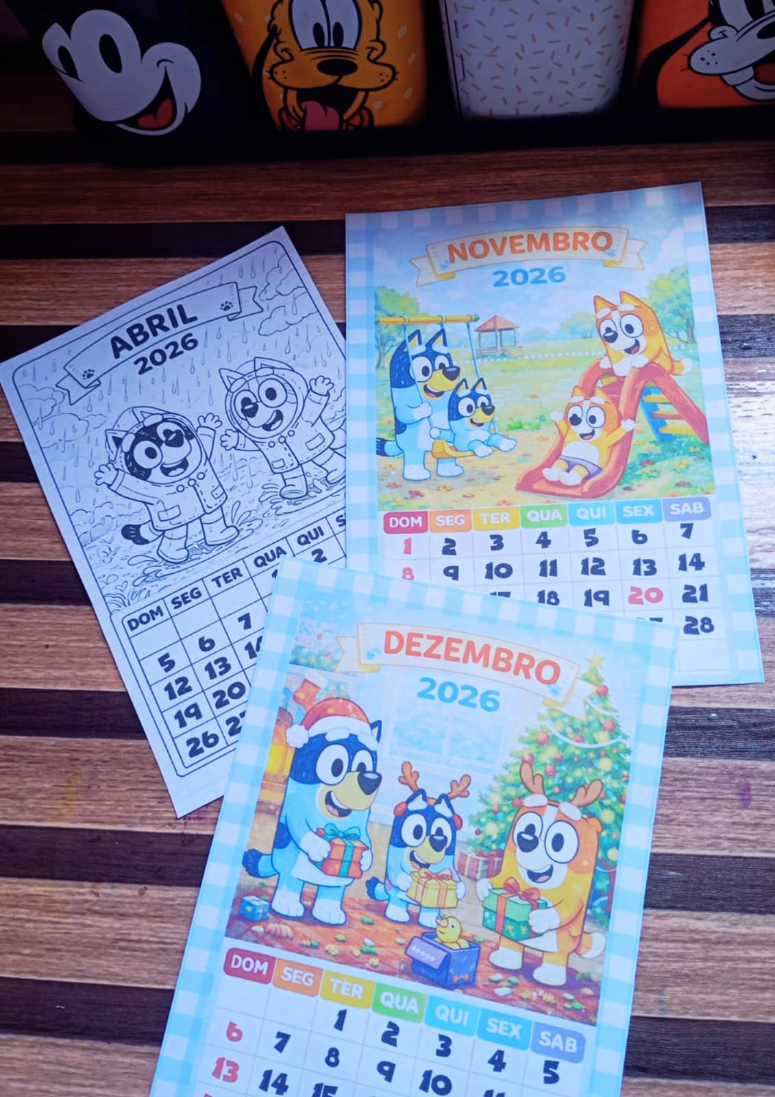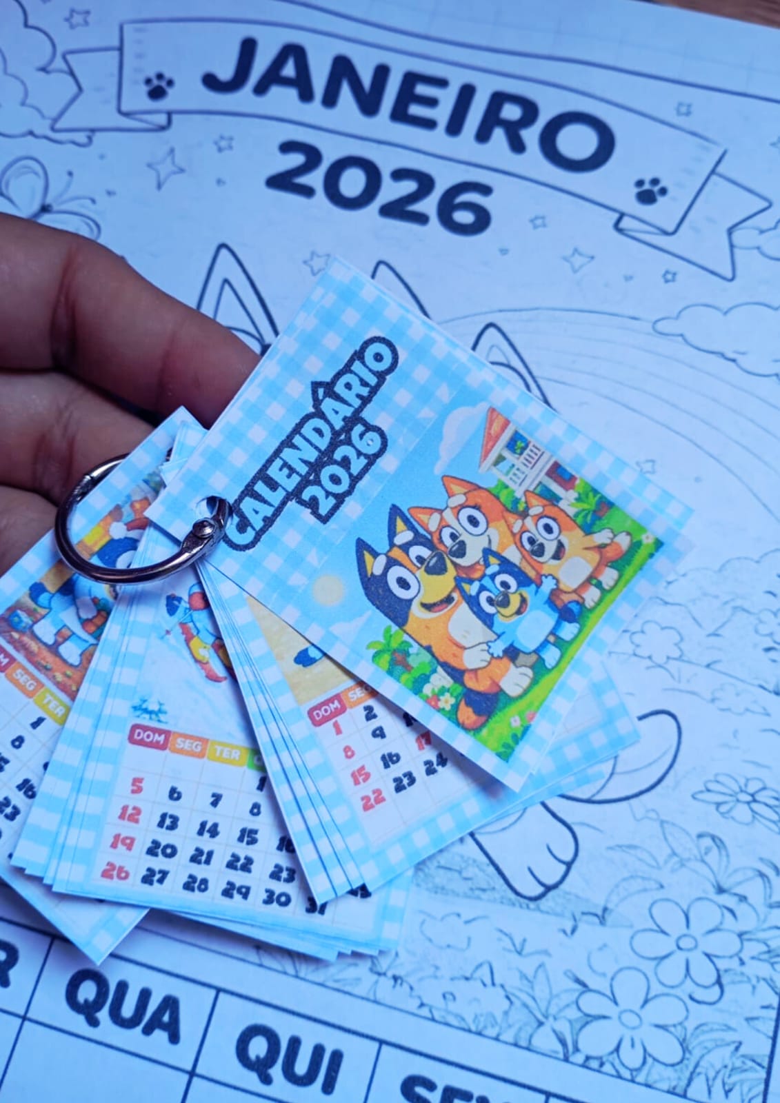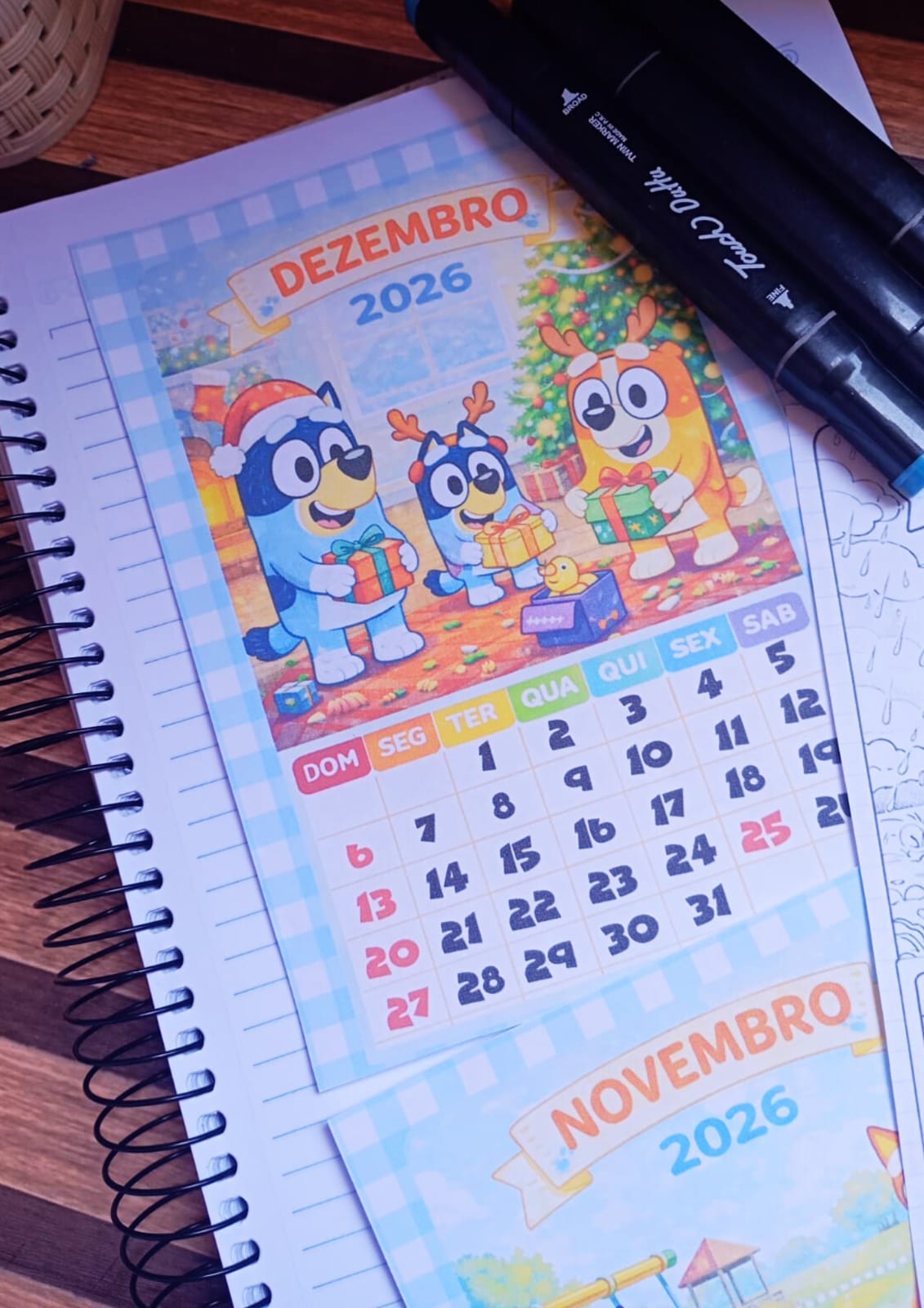 CALENDÁRIO BLUEY 2026 (Colorido + Para Colorir) + BÔNUS CHAVEIRO
