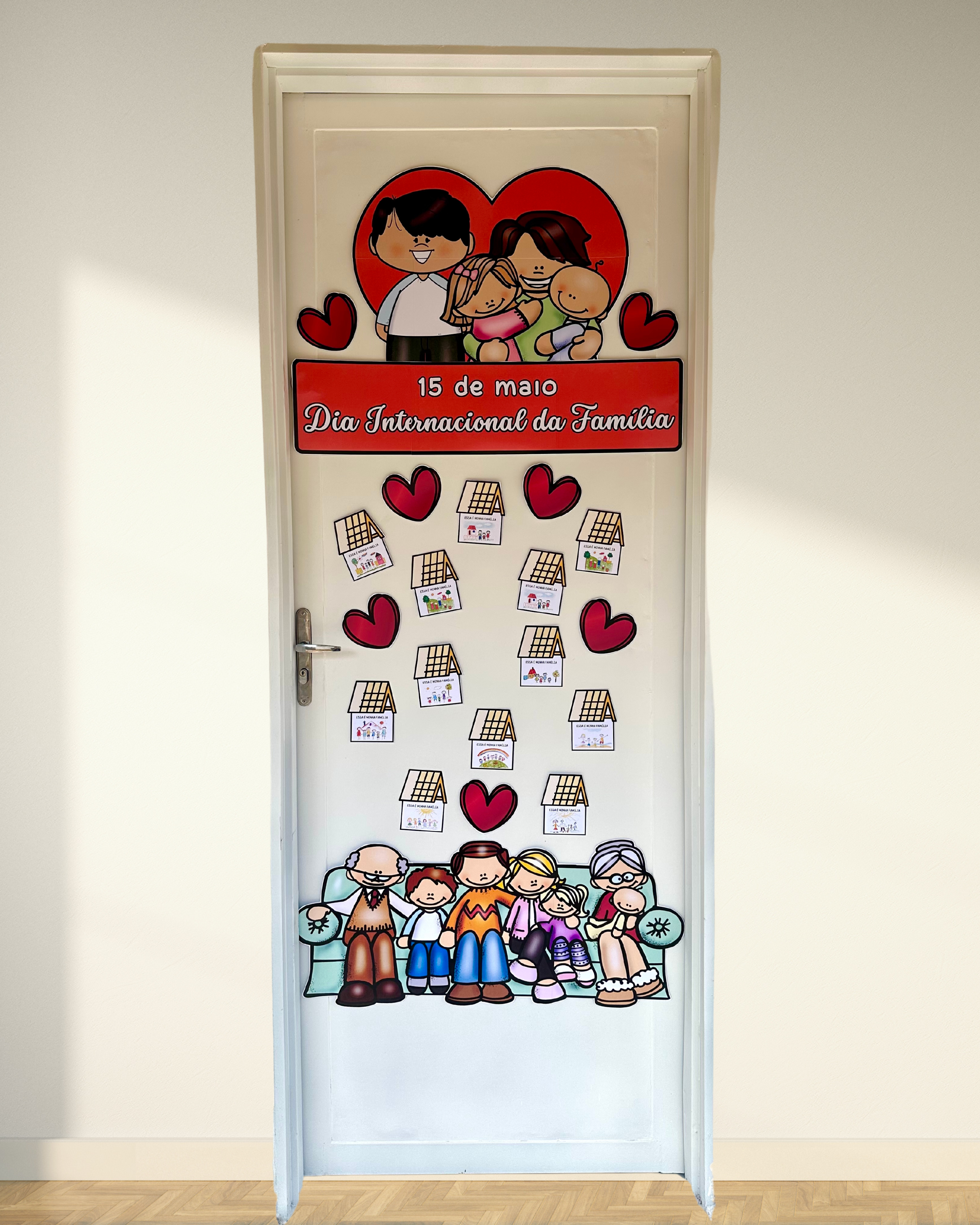 Arquivo para decoração de porta tema Dia Internacional da Família. o arquivo vai em PDF pronto