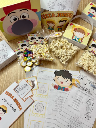O Kit Festa Junina completo conta com 60 páginas, e inclui os seguintes itens: