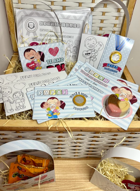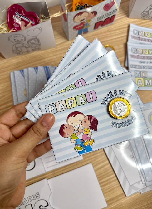 – Cartão: “Papai você é meu tesouro” (moeda de chocolate)