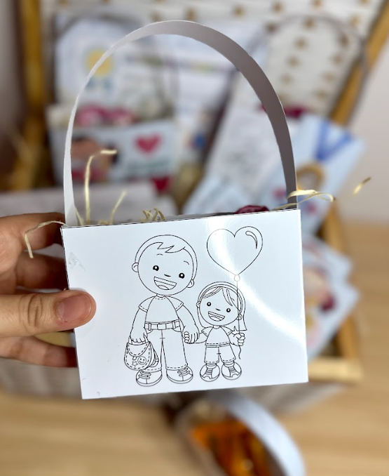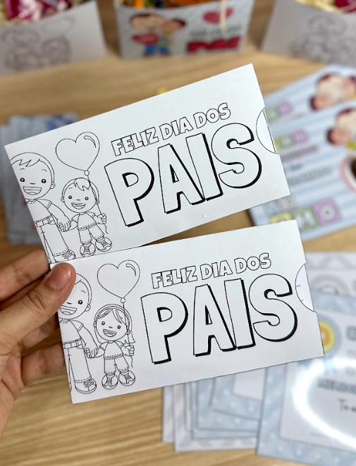 – Envelope e cartão para escrever uma mensagem para o papai ou para desenhar (opção menino e menina)
