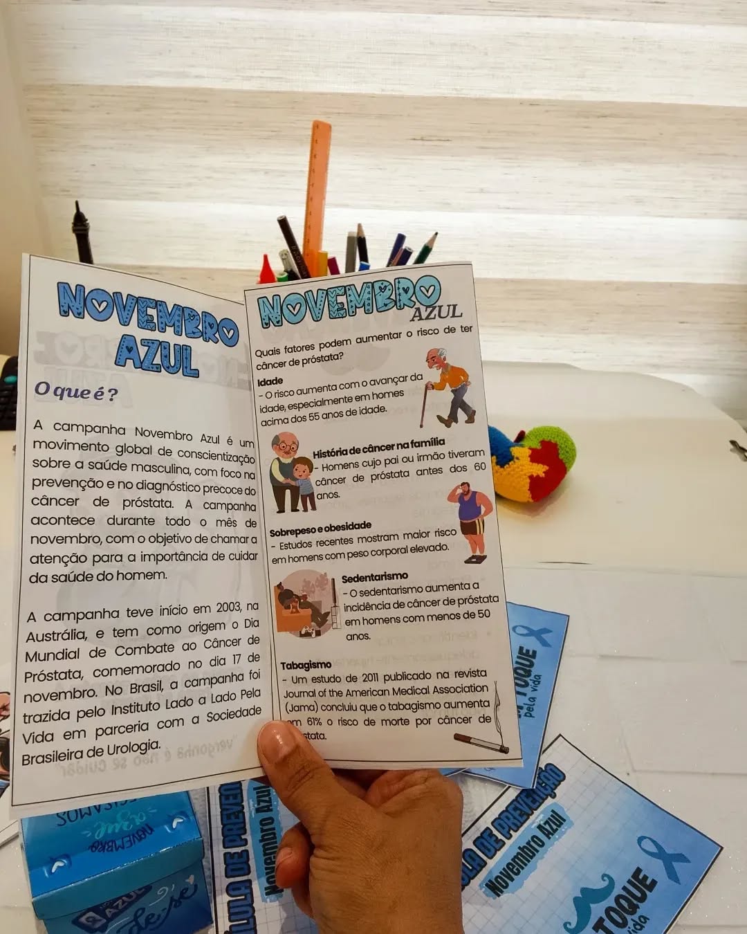Este kit Novembro Azul tem como objetivo criar um ambiente informativo e de apoio à saúde masculina. Utilize-o para divulgar informações valiosas e promover o autocuidado.