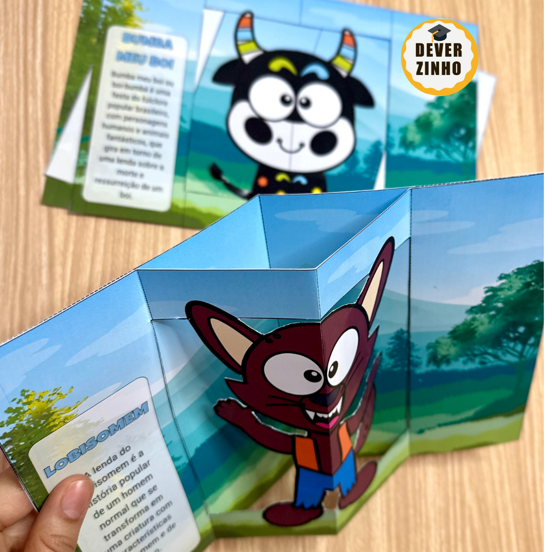 O Livro 3D Folclore Brasileiro éum recurso lúdico para a apresentação dos personagens folclóricos e suas principais características.