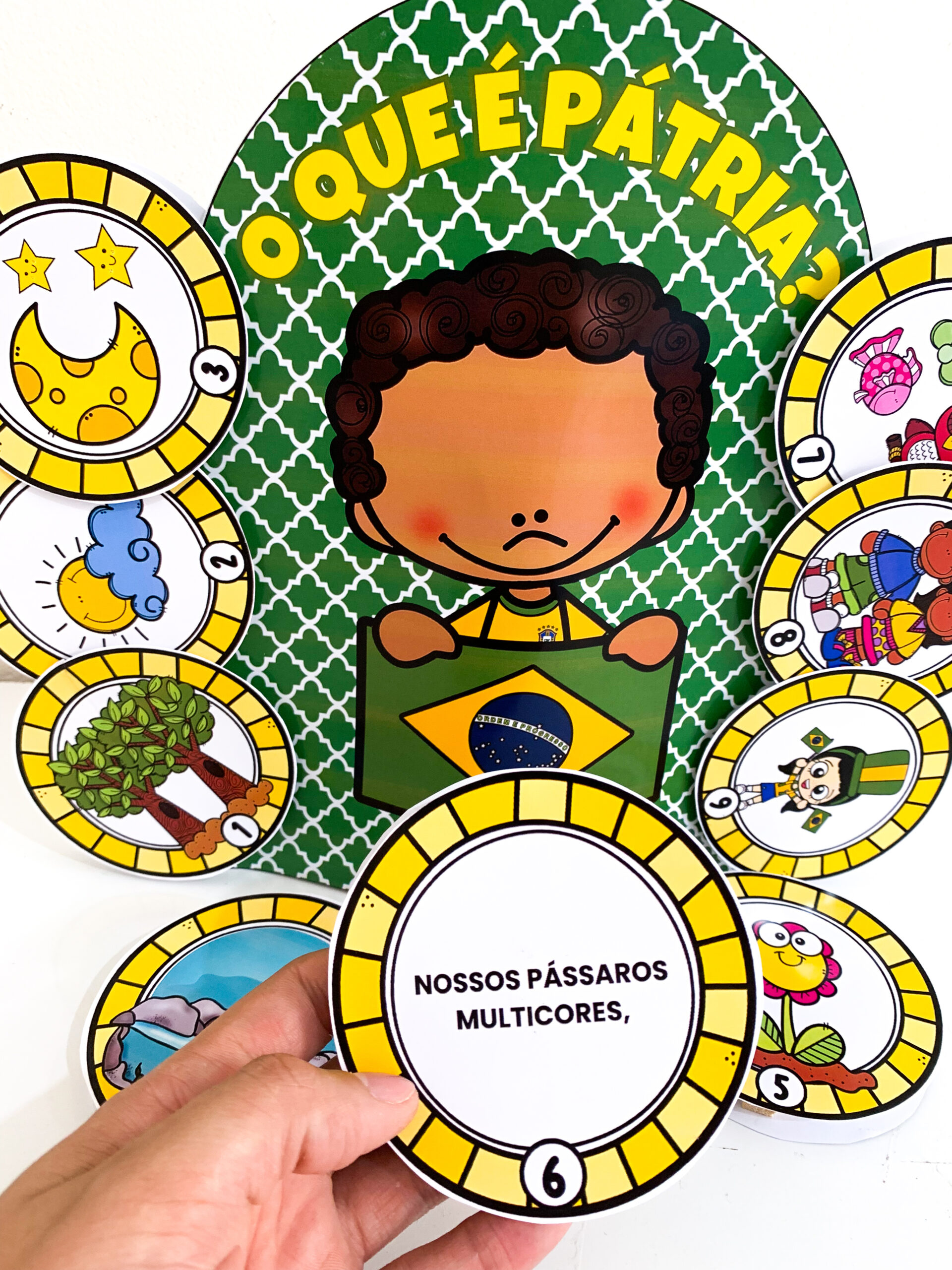 Luva com o poema “O que é Pátria” para trabalhar o tema “Independência do Brasil” com crianças da Educação Infantil.
