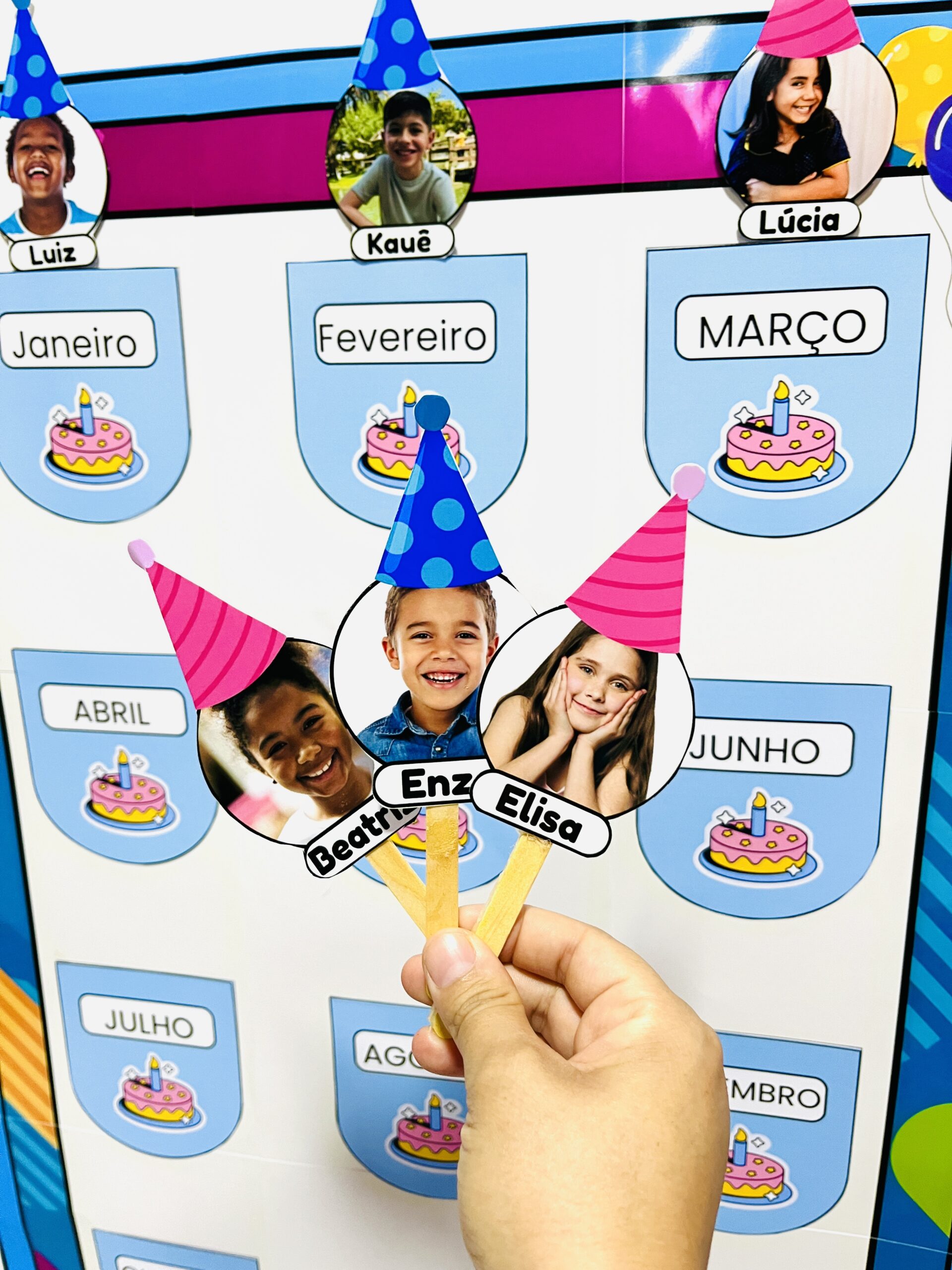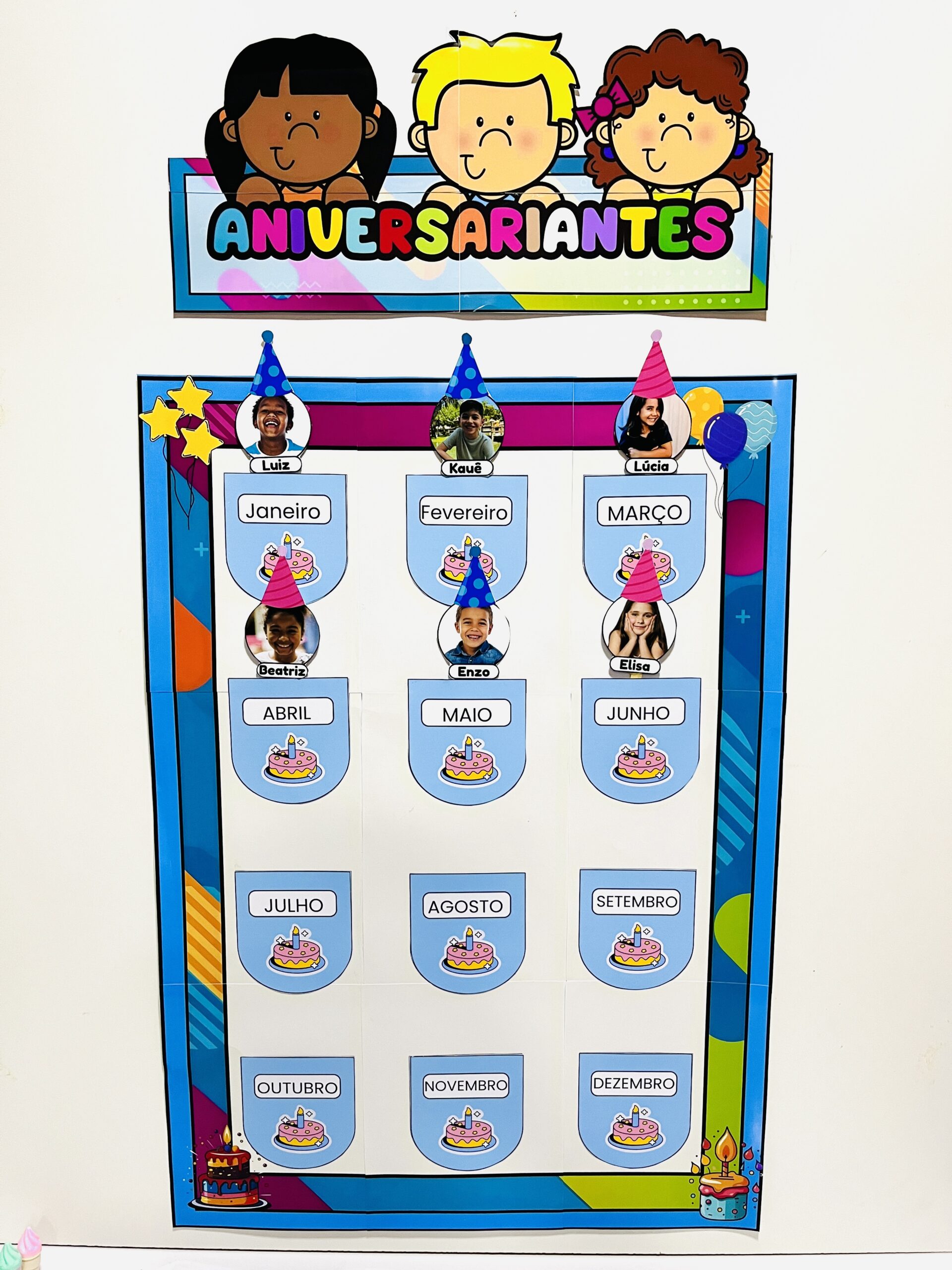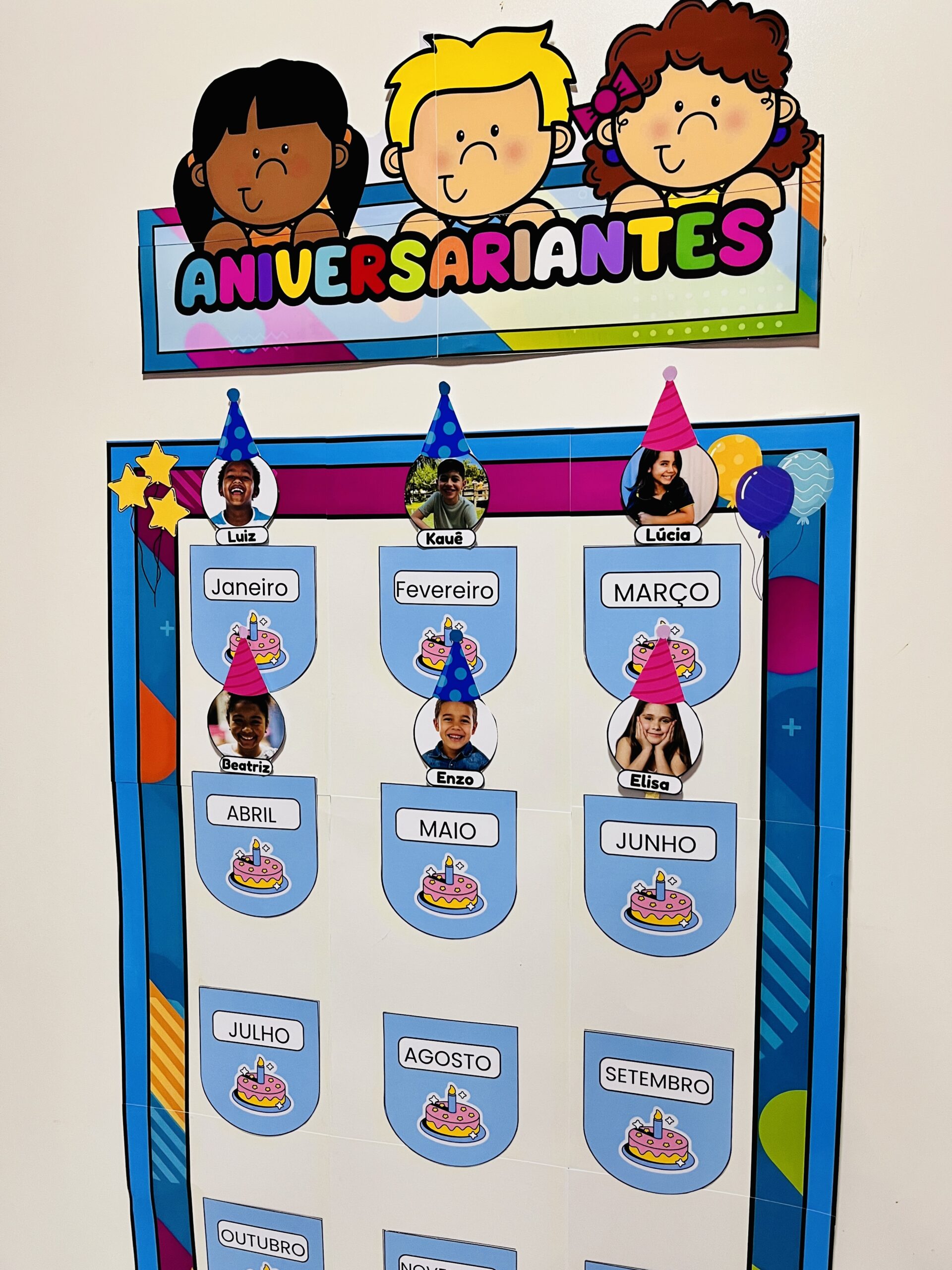 Com espaço para fotos, nomes e meses, ele se torna interativo, afetivo e amado pelas crianças!