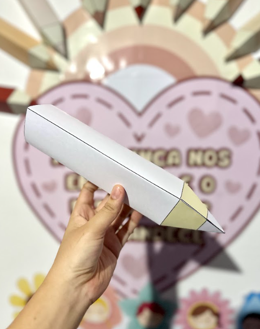 O arquivo também acompanha o lápis branco, para as crianças colorirem com suas cores. O painel montado fica com 1m de largura e 1,1 m de altura.