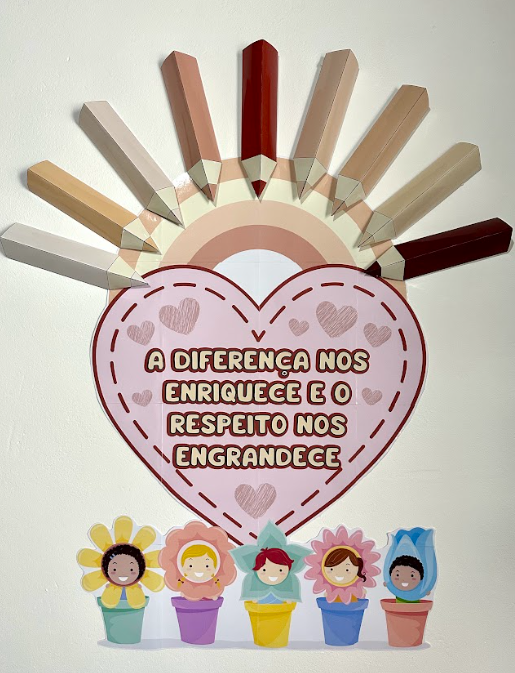 Painel para trabalhar o respeito às diferenças, em PDF. O arquivo já vai ampliado, e pode ser utilizado no mês da Consciência Negra para introduzir o tema com as crianças. Inclui lápis 3D com tons de pele para destacar nossas diferenças e nossas características, pois todos somos diferentes e isso nos faz únicos e especiais.