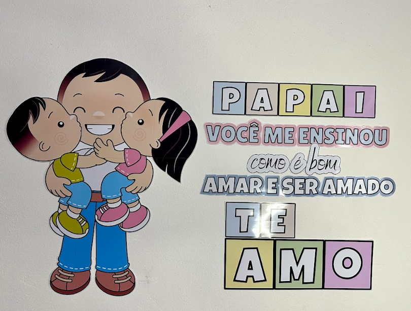 O Painel Dia dos Pais inclui a frase “PAPAI VOCÊ ME ENSINOU COMO É BOM AMAR E SER AMADO, TE AMO” e uma imagem, em tamanho já ampliado, para a montagem do painel de parede.