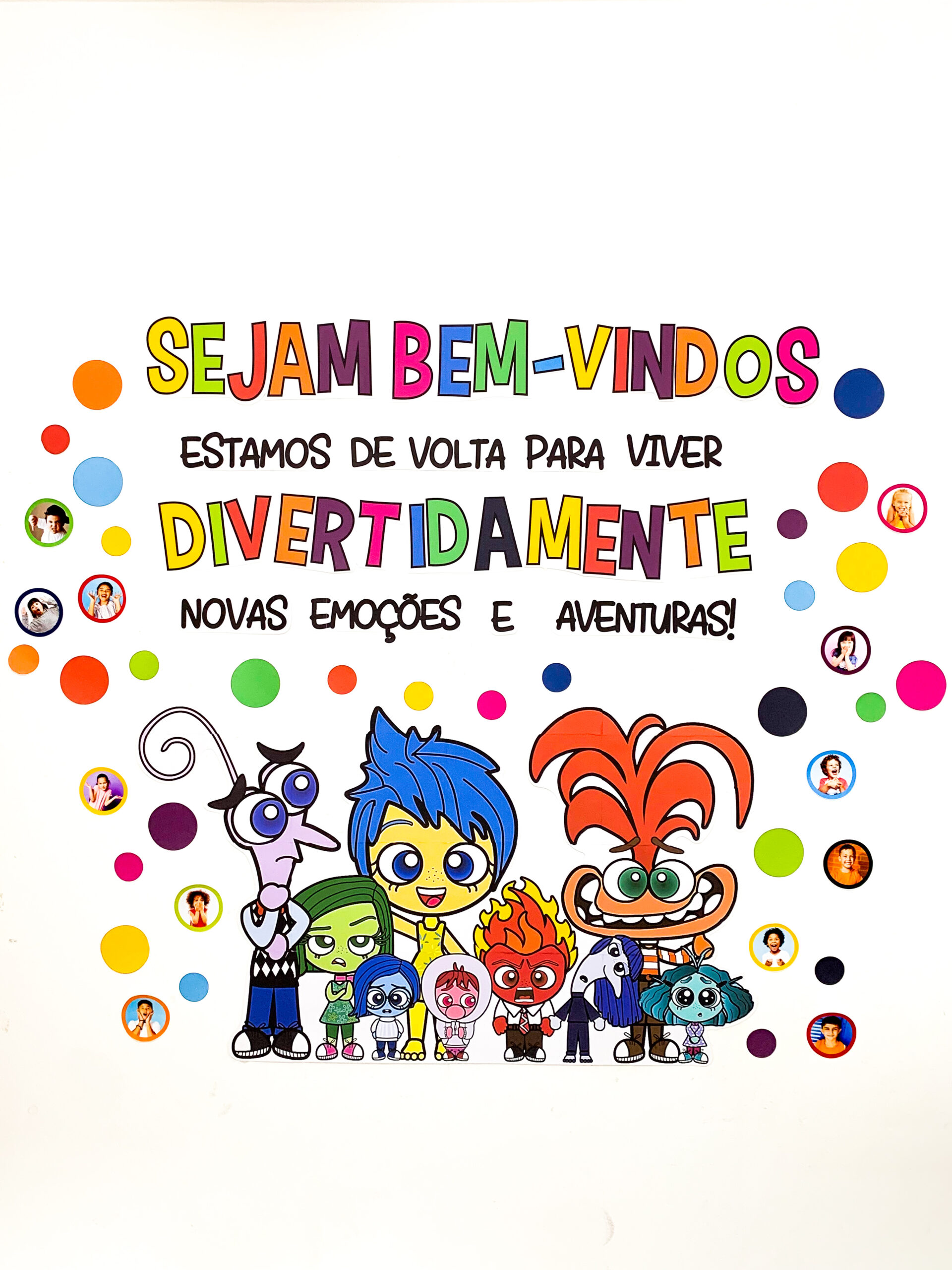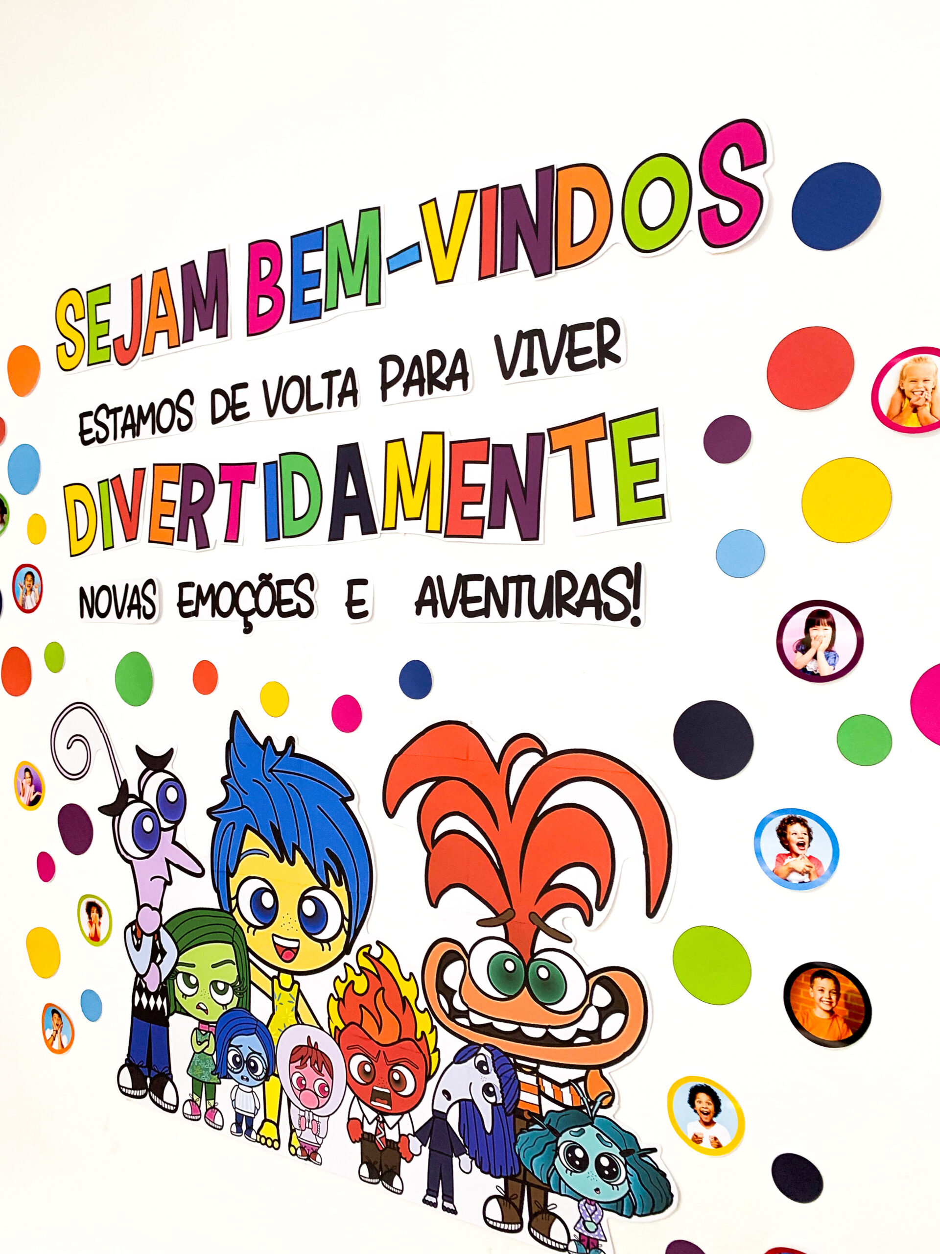 Painel Volta às Aulas Divertidamente para recepcionar as crianças da Educação Infantil e das séries iniciais do Ensino Fundamental.