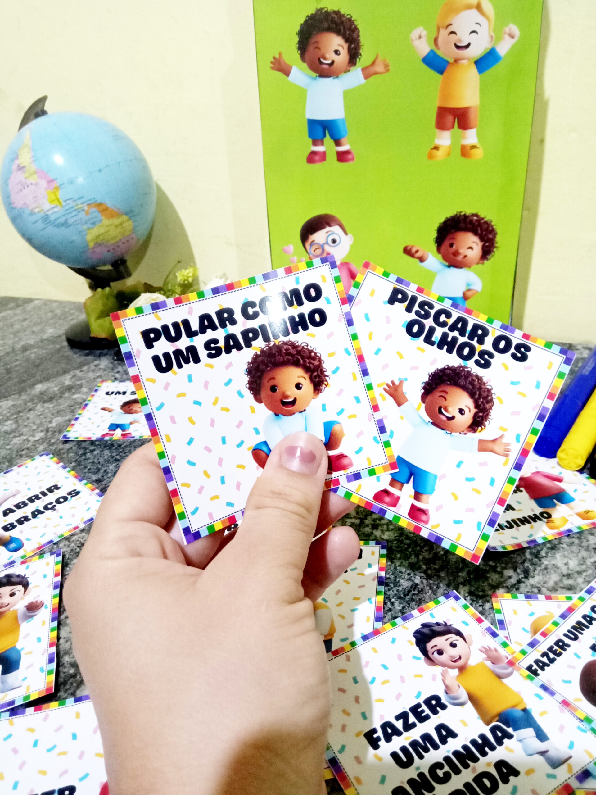 Acompanha 23 fichas ilustradas com comandos simples e divertidos