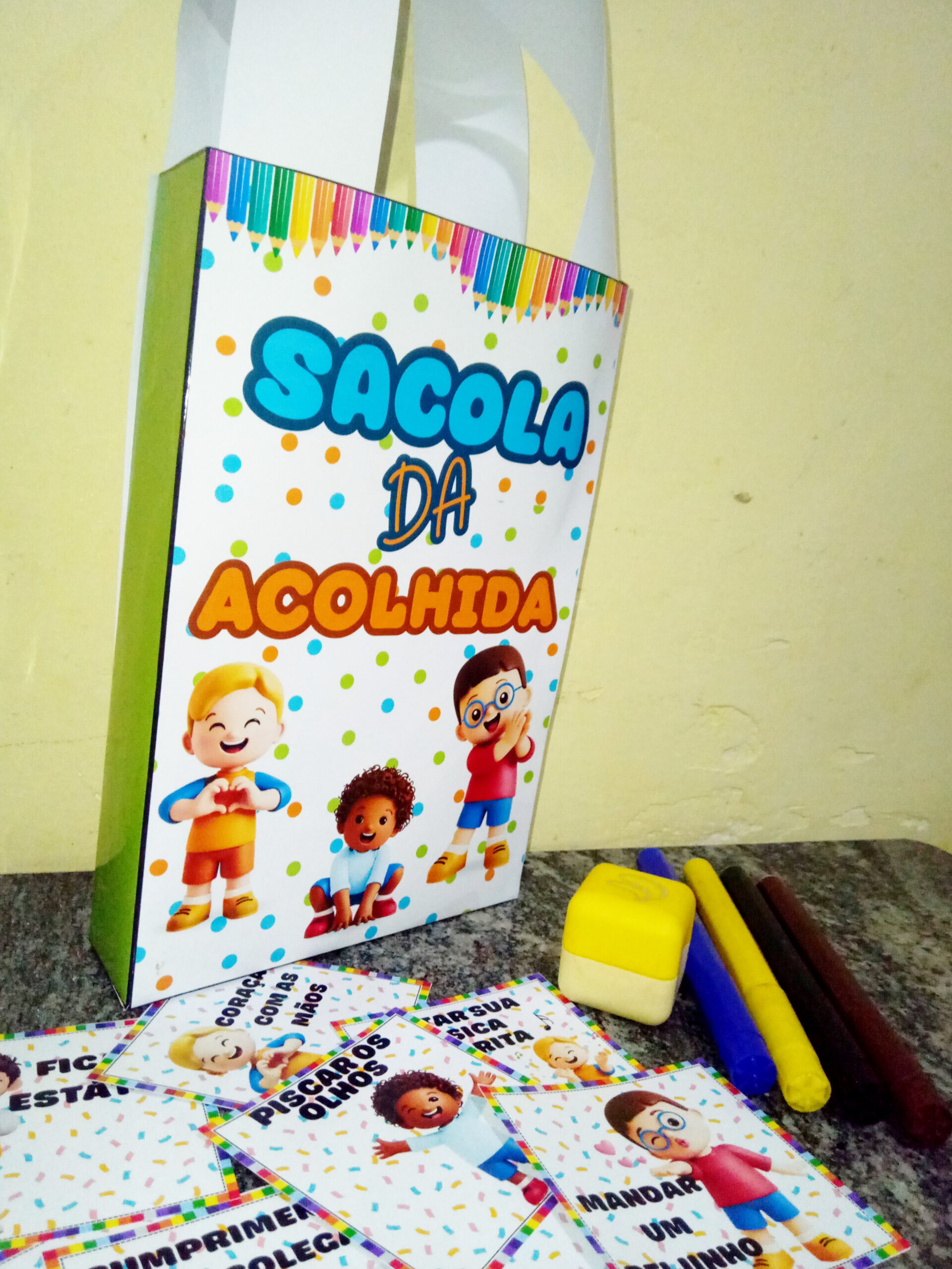 A Sacola da Acolhida é um recurso lúdico que ajuda as crianças a se sentirem seguras, acolhidas e integradas desde o primeiro dia, por meio de comandos simples, movimentos corporais e muita interação.