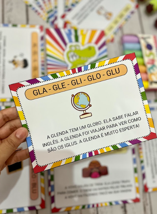 O arquivo possui 26 textos para leitura, em que cada um estimula a leitura de uma família silábica complexa.